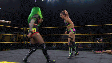 Despite their opponents unsavory nature, Tegan and Shotzi understandably stood in awe of their ring entrance because they are still Sasha Banks & Bayley. But as soon as Bayley predictably opened her big mouth, that awe turned to ire. Tegan and Shotzi were going to be the pioneers who finally christened the women's tag team titles in Black & Gold. They gave Sasha and Bayley a good fight, controlling much of the early contest. After Nox took a pounding for a time, she tagged out to Shotzi who unleashed hell.