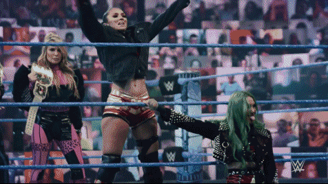 Shotzi & Nox were set to make their formal SmackDown debuts on the July 9th episode as surprise opponents in a non-title match against WWE Women's Tag Team Champions Natalya & Tamina. The episode was the final to take place inside the last incarnation of the WWE ThunderDome. You'd think it would have made more sense to let them finish their NXT runs with feud blowoff matches on NXT July 13th then SmackDown debut them on the July 16th episode, which was the first full capacity show back on the road since RAW on March 9th 2020.