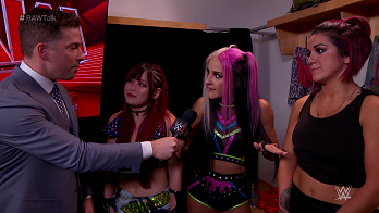 Bayley came to the ring alone to face Aliyah, proving to any doubters that she didn't need her allies at ringside for moral or otherwise support. Aliyah put up a good fight, having one of the best matches of her career. Nevertheless, Bayley still scored the hard-earned pinfall victory after delivering the Rose Plant. Dakota and IYO would come out to celebrate with their friend. But Damage Control was not done just yet. They would once again give their time to appear on the WWE Network post show The Control Center... uh I mean RAW Talk.