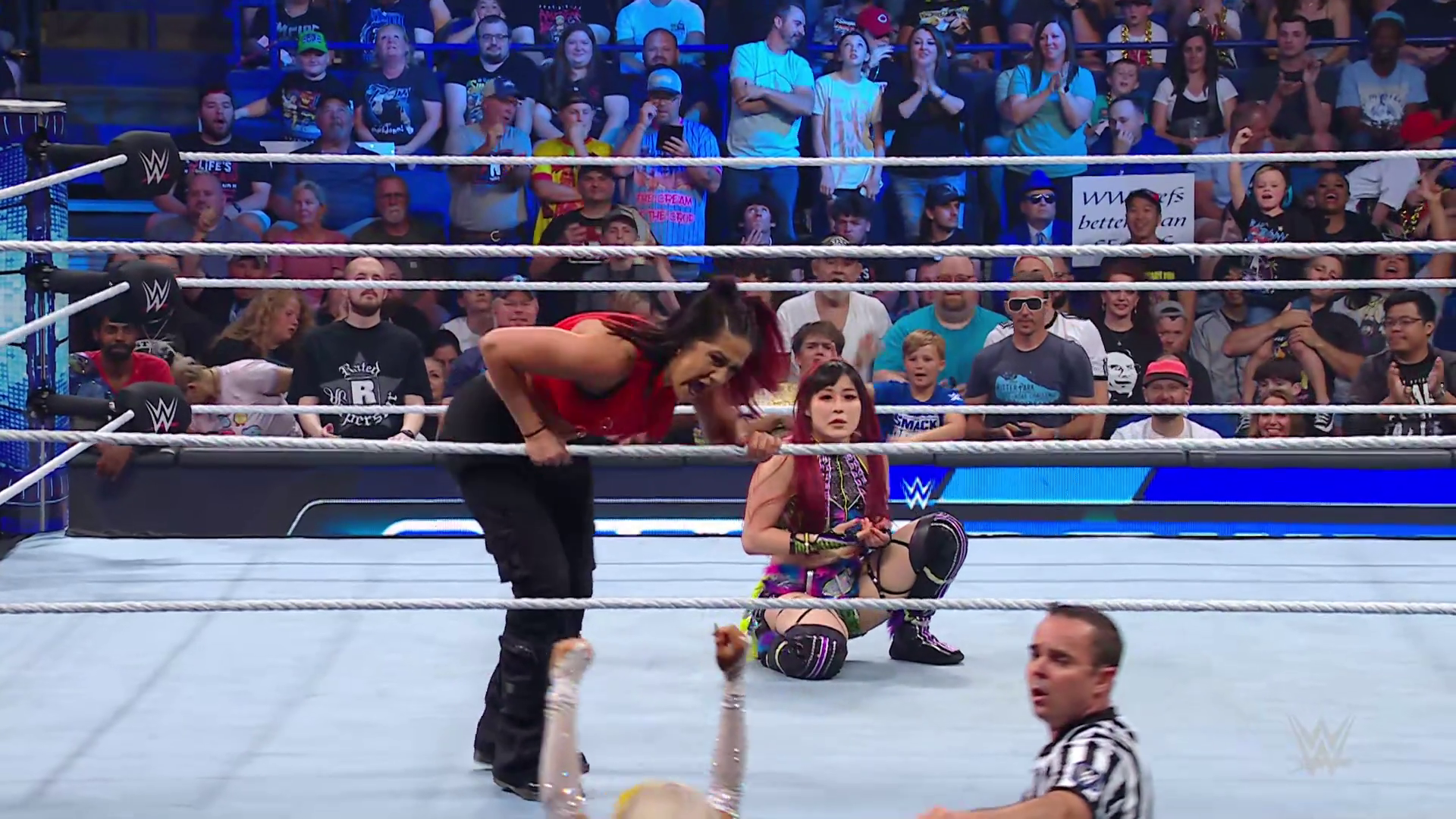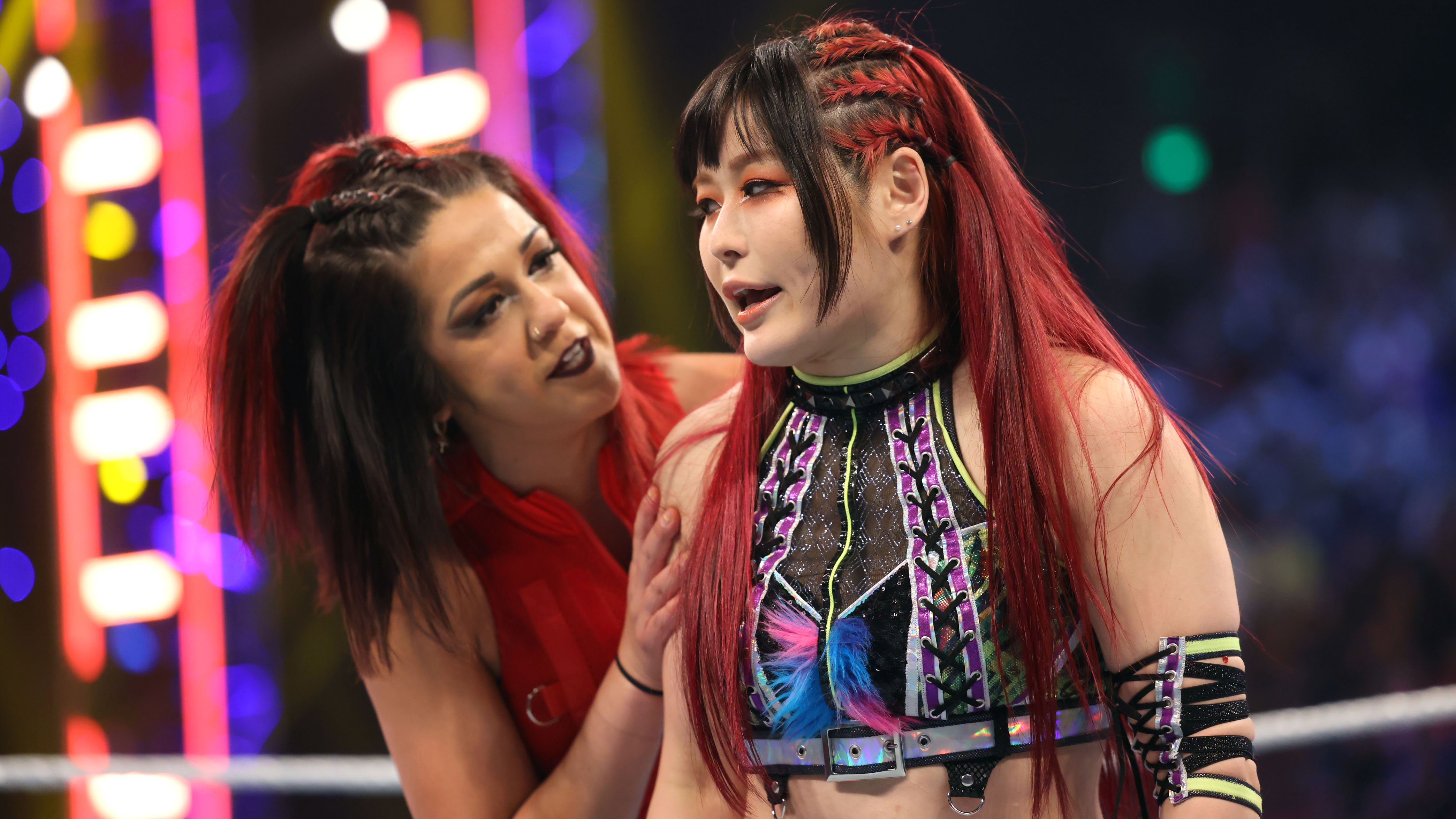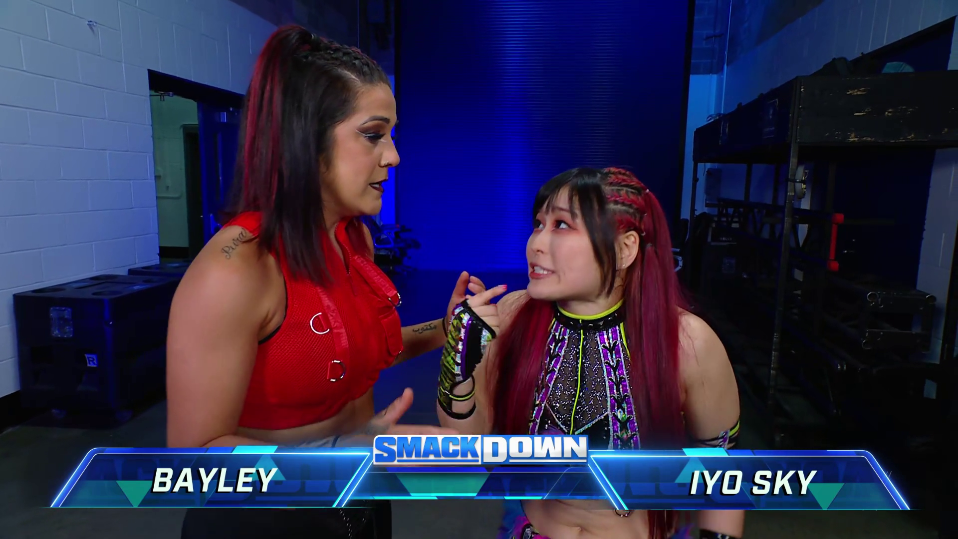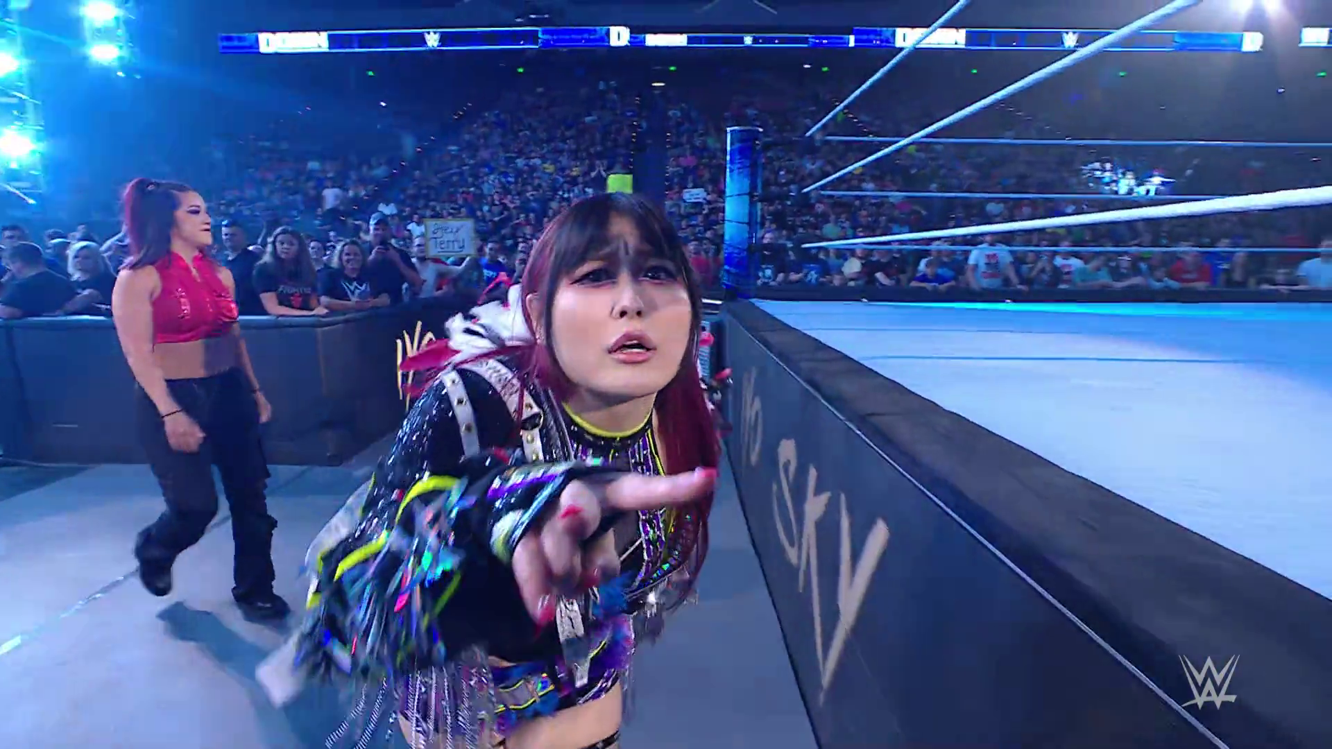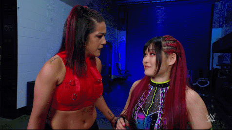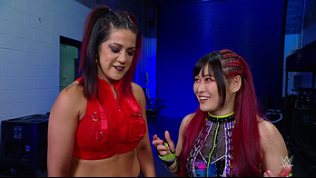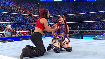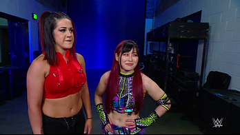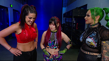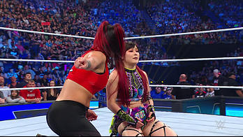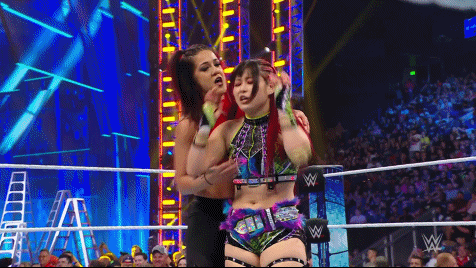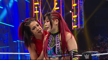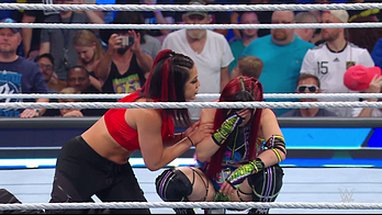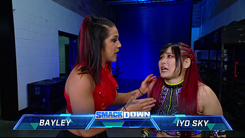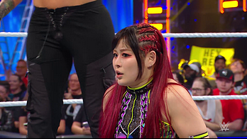 On the June 16th 2023 episode of SmackDown, IYO faced Zelina. Bayley got up on the apron to provide a distraction to assist SKY. IYO came up behind Vega to roll her up for a pin only for Zelina to counter with a waistlock. SKY nearly collided with Bayley. The referee was distracted admonishing Bayley, missing SKY countering Vega's waistlock into a roll-up. Bayley shouted at the referee to return his attention to the match, pointing at the pin. The referee was too late and Vega kicked out. IYO turned her gaze to Bayley, shouting aggressively at her.