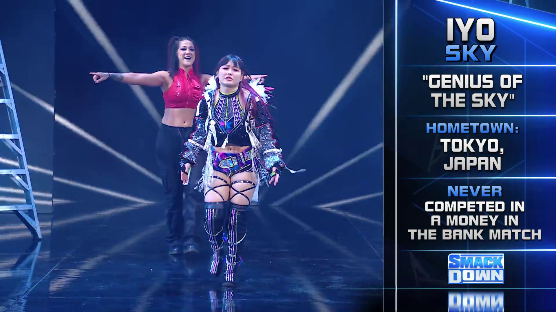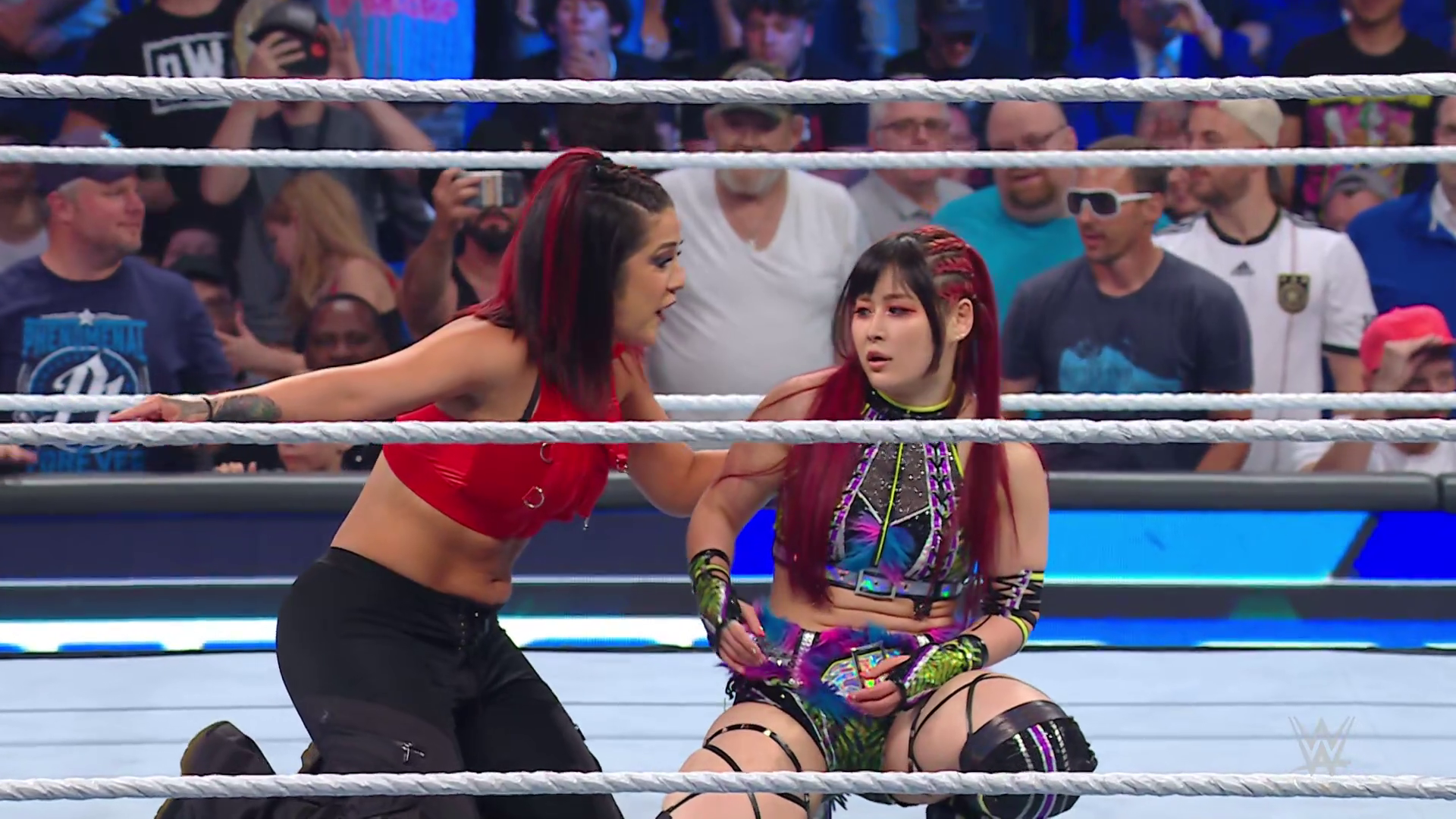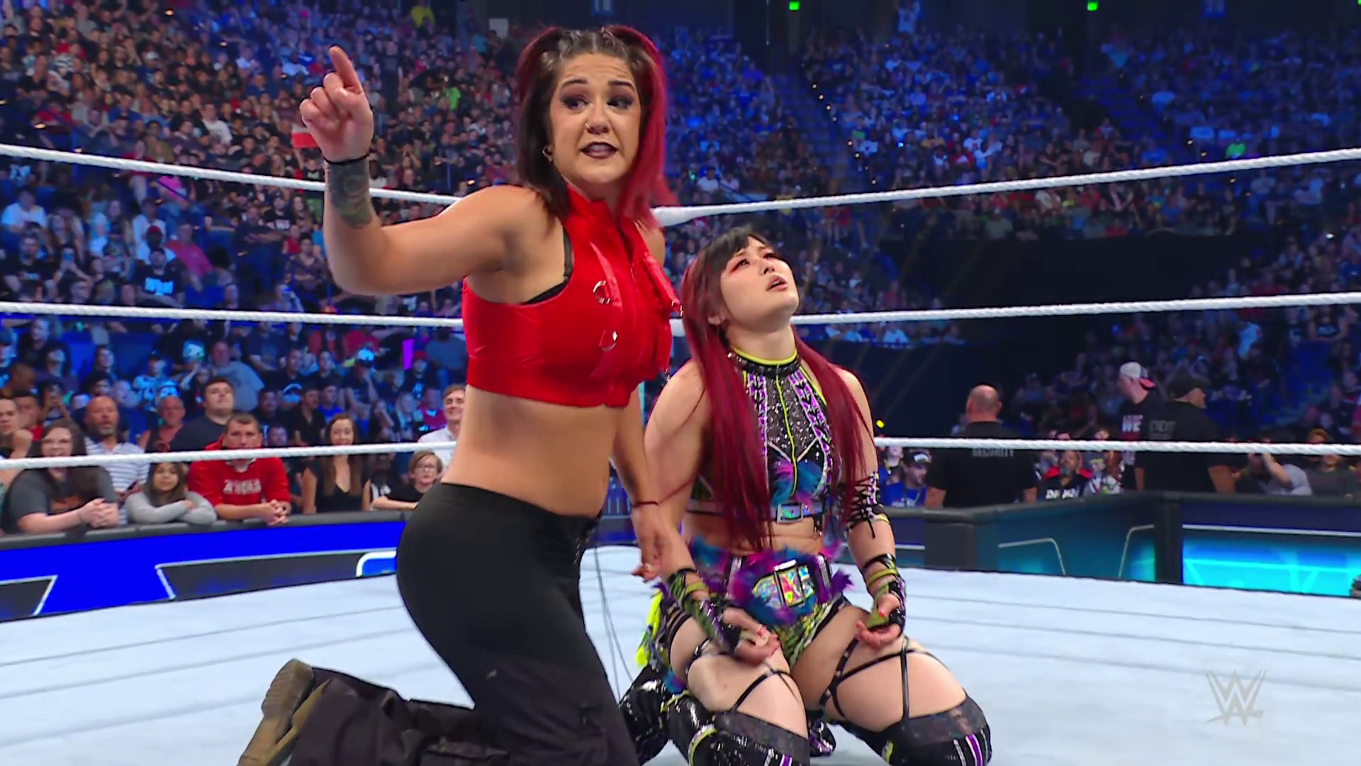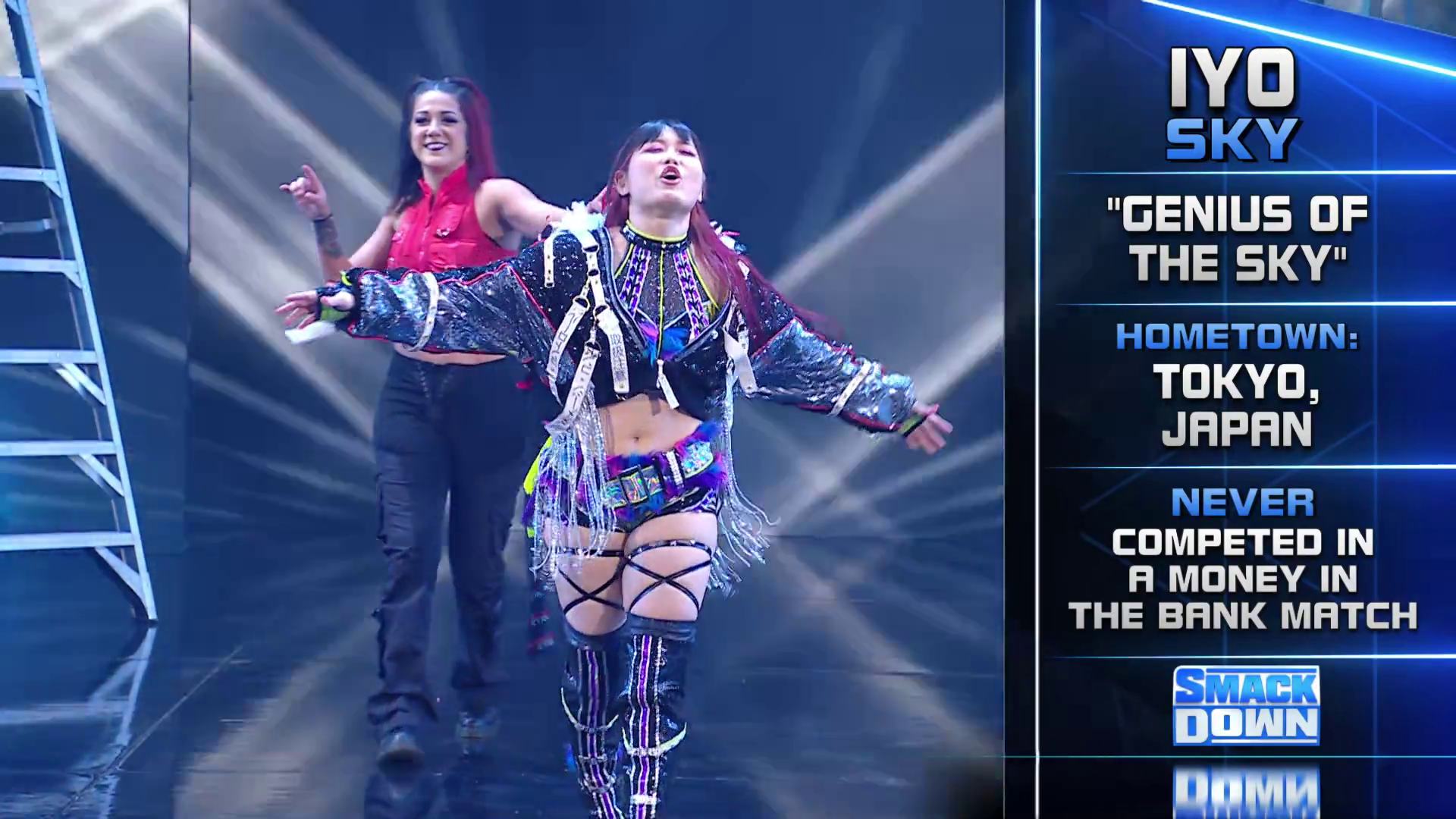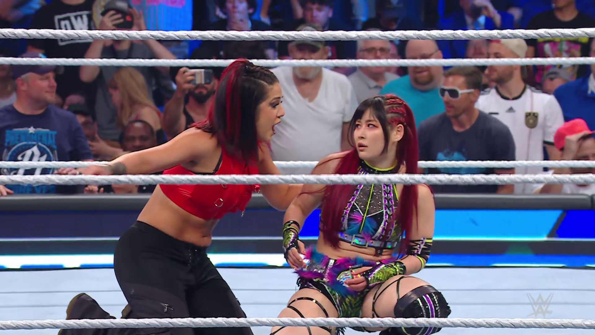 On the June 16th 2023 episode of SmackDown, IYO faced Zelina. Bayley got up on the apron to provide a distraction to assist SKY. IYO came up behind Vega to roll her up for a pin only for Zelina to counter with a waistlock. SKY nearly collided with Bayley. The referee was distracted admonishing Bayley, missing SKY countering Vega's waistlock into a roll-up. Bayley shouted at the referee to return his attention to the match, pointing at the pin. The referee was too late and Vega kicked out. IYO turned her gaze to Bayley, shouting aggressively at her.