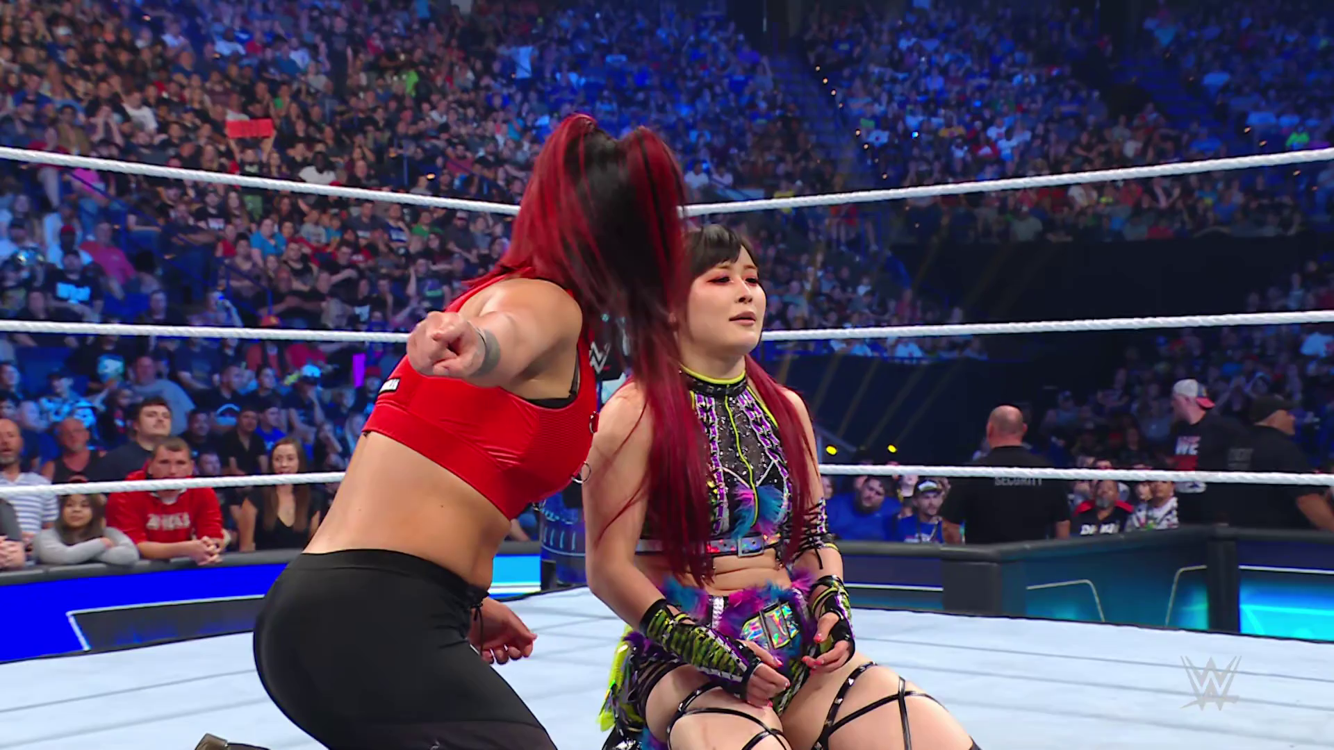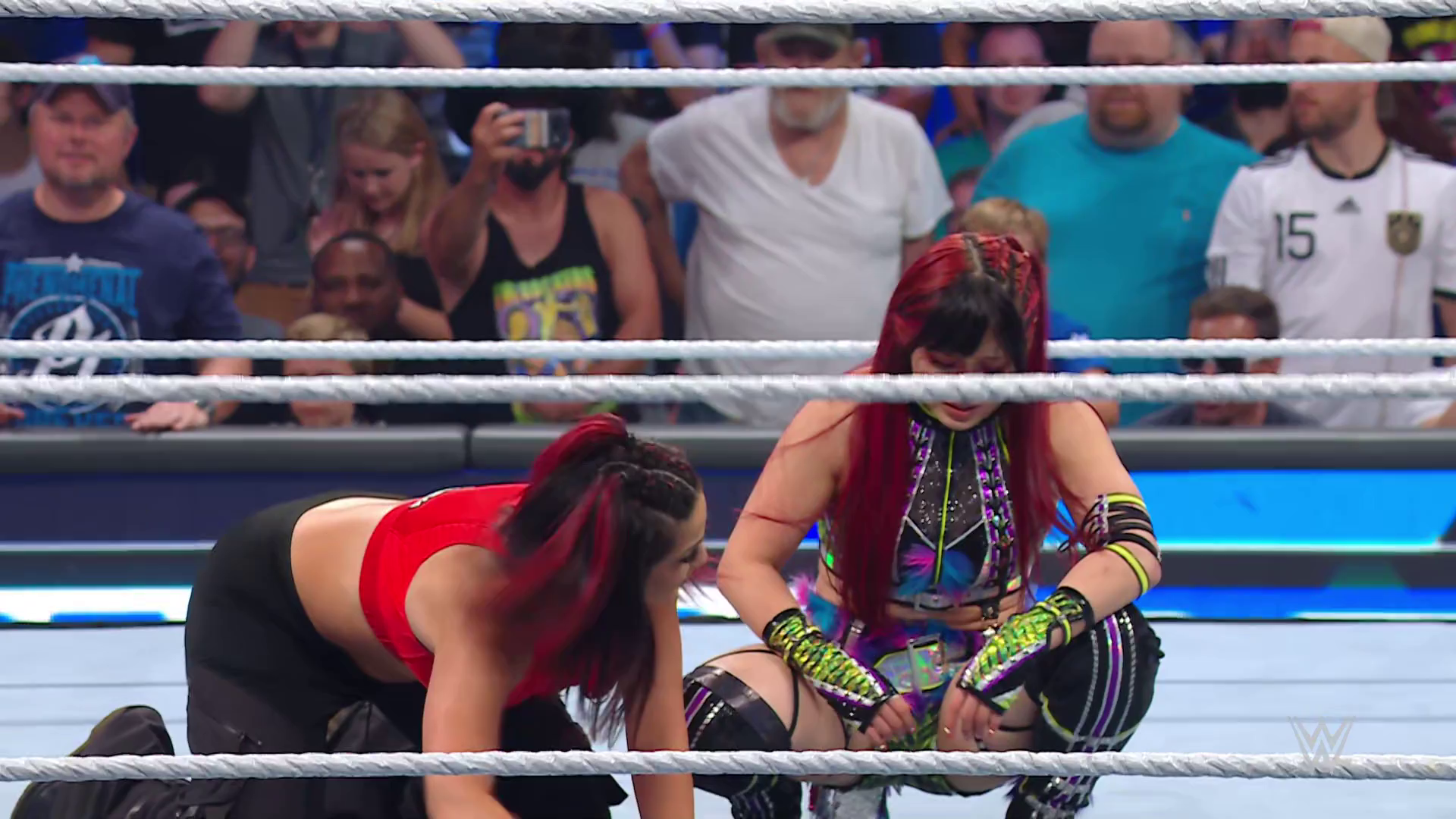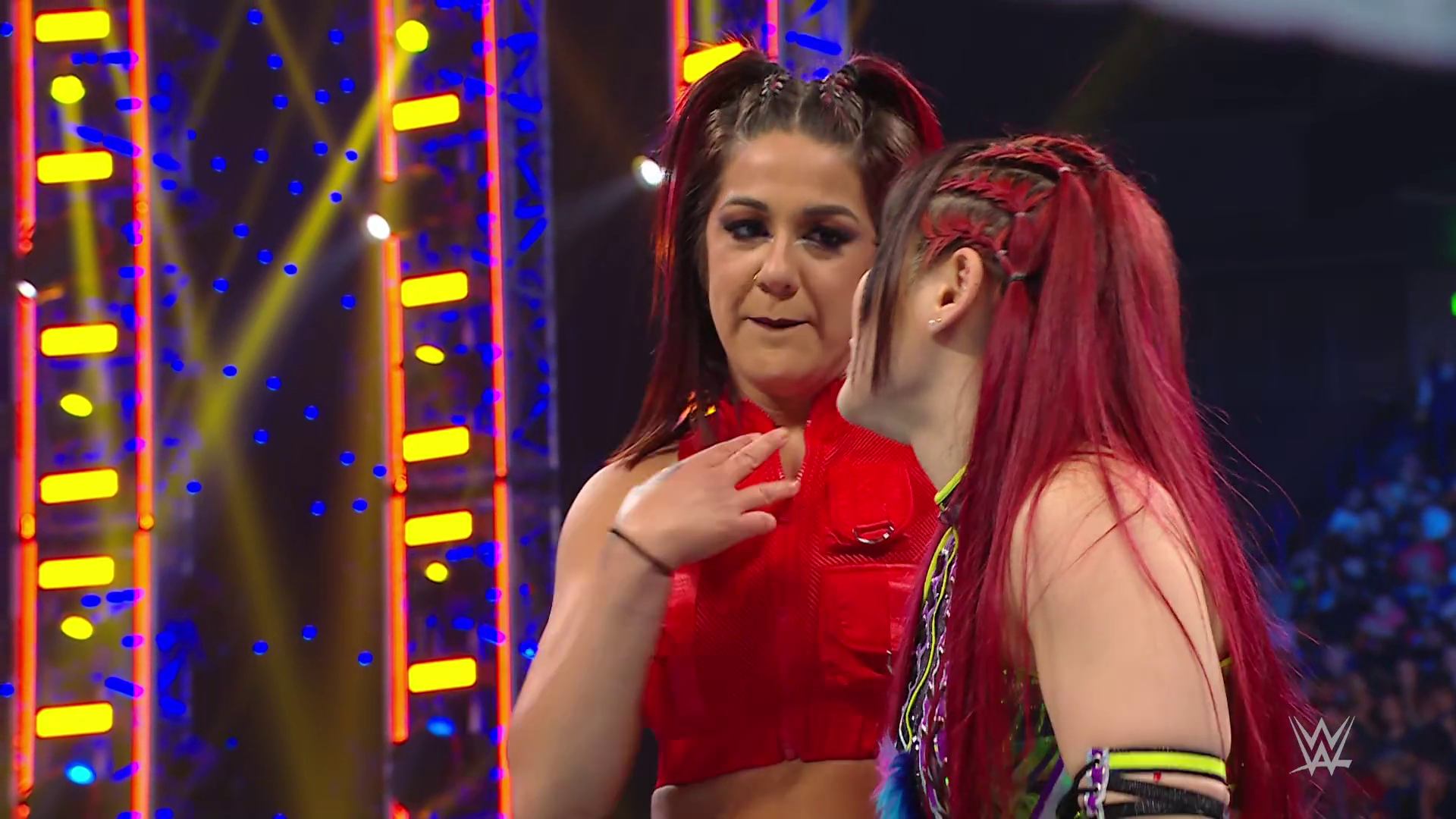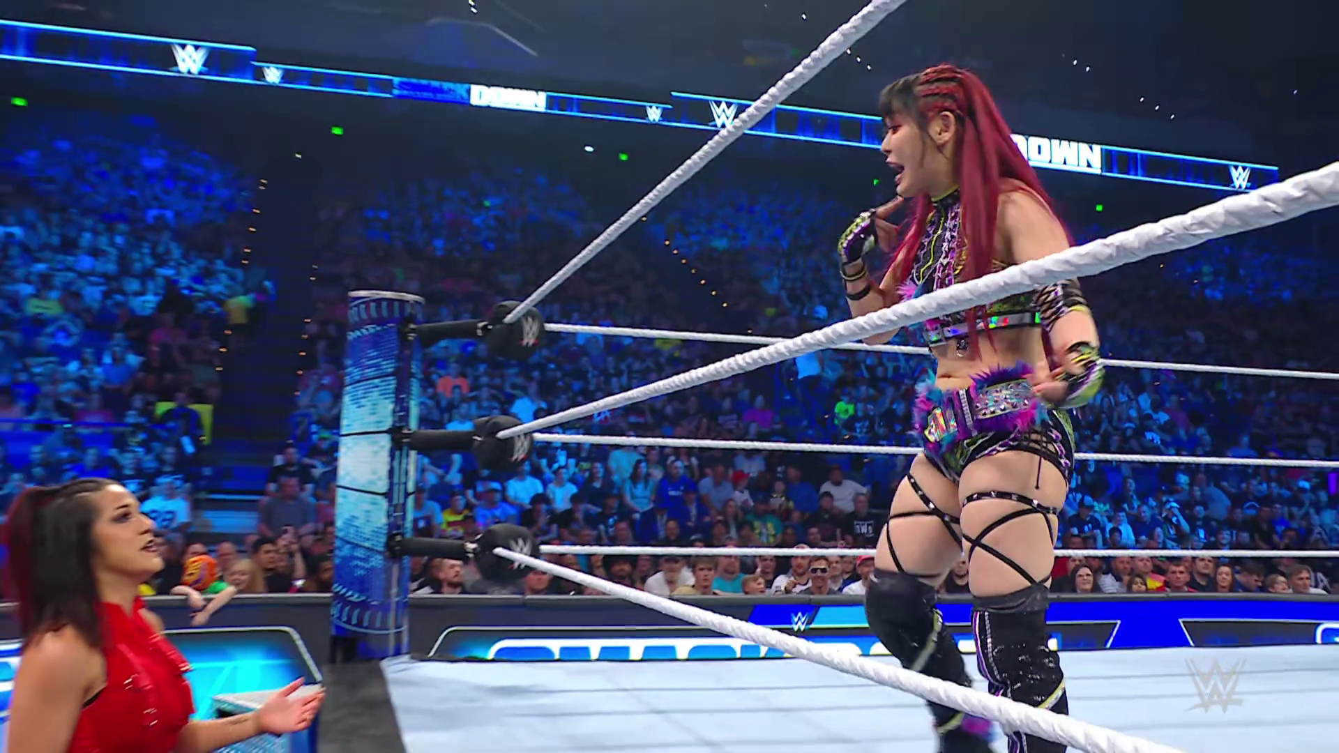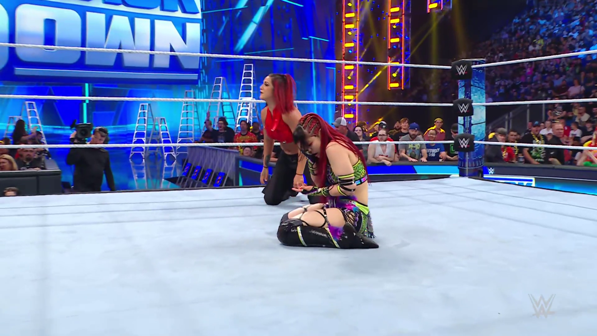 On the June 16th 2023 episode of SmackDown, IYO faced Zelina. Bayley got up on the apron to provide a distraction to assist SKY. IYO came up behind Vega to roll her up for a pin only for Zelina to counter with a waistlock. SKY nearly collided with Bayley. The referee was distracted admonishing Bayley, missing SKY countering Vega's waistlock into a roll-up. Bayley shouted at the referee to return his attention to the match, pointing at the pin. The referee was too late and Vega kicked out. IYO turned her gaze to Bayley, shouting aggressively at her.