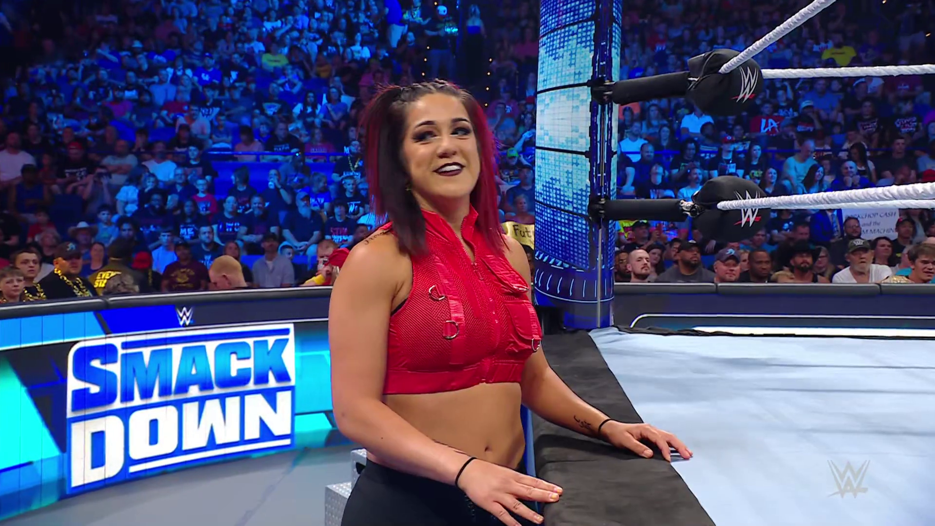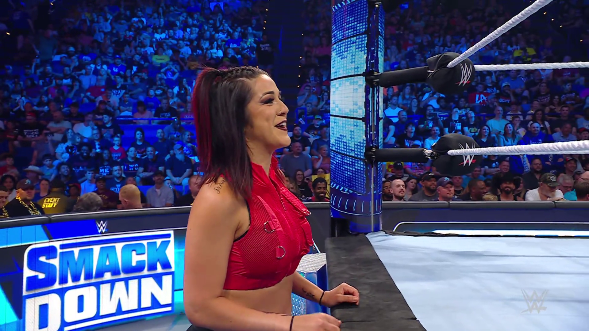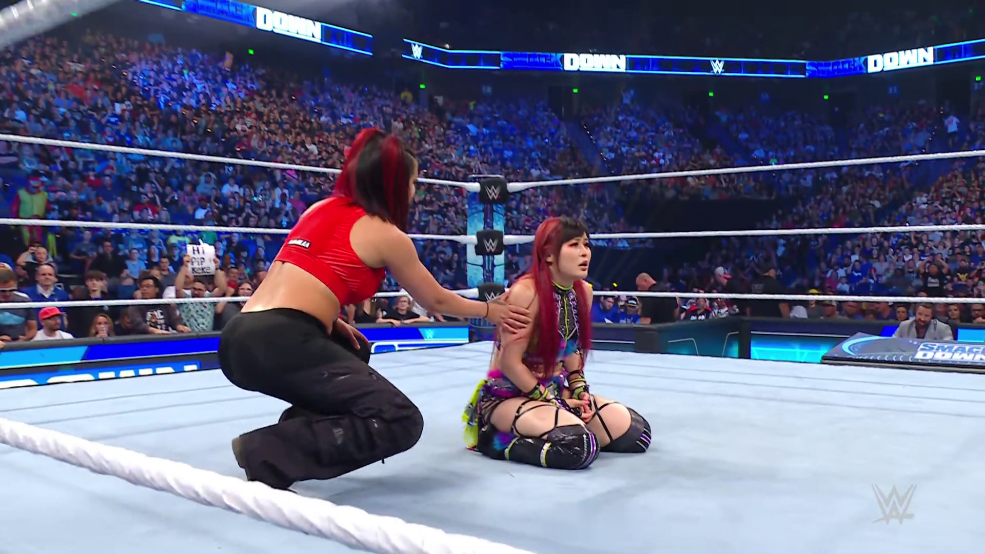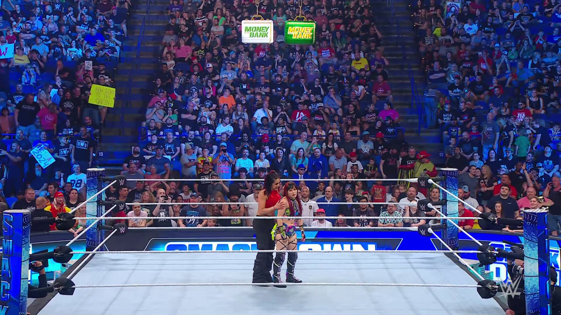 On the June 16th 2023 episode of SmackDown, IYO faced Zelina. Bayley got up on the apron to provide a distraction to assist SKY. IYO came up behind Vega to roll her up for a pin only for Zelina to counter with a waistlock. SKY nearly collided with Bayley. The referee was distracted admonishing Bayley, missing SKY countering Vega's waistlock into a roll-up. Bayley shouted at the referee to return his attention to the match, pointing at the pin. The referee was too late and Vega kicked out. IYO turned her gaze to Bayley, shouting aggressively at her.