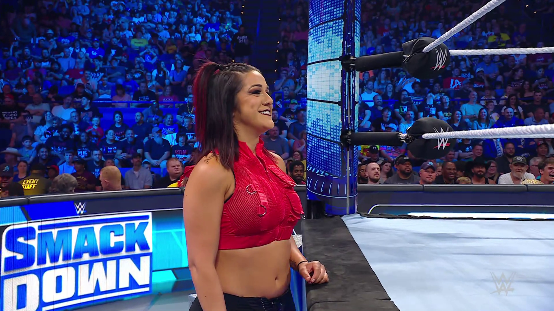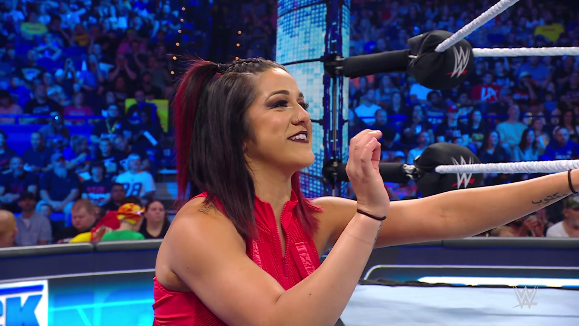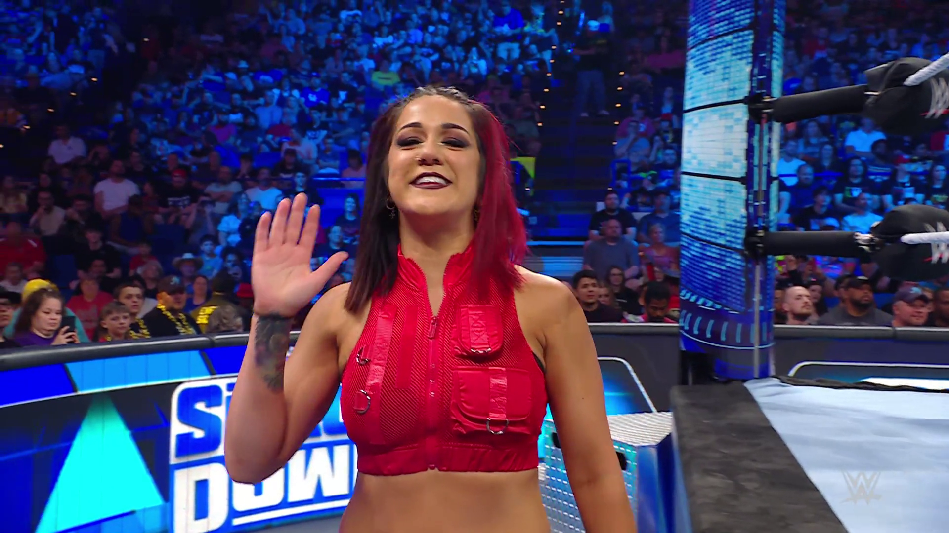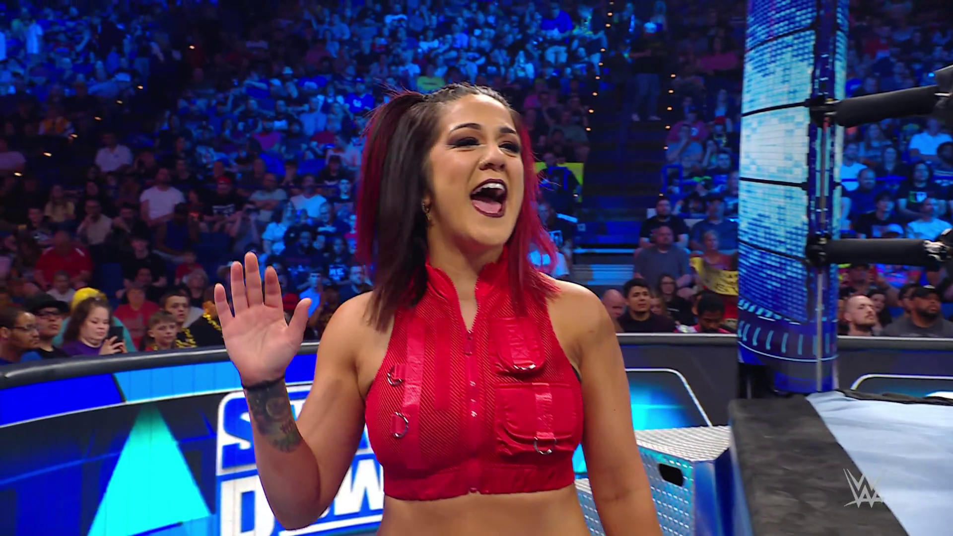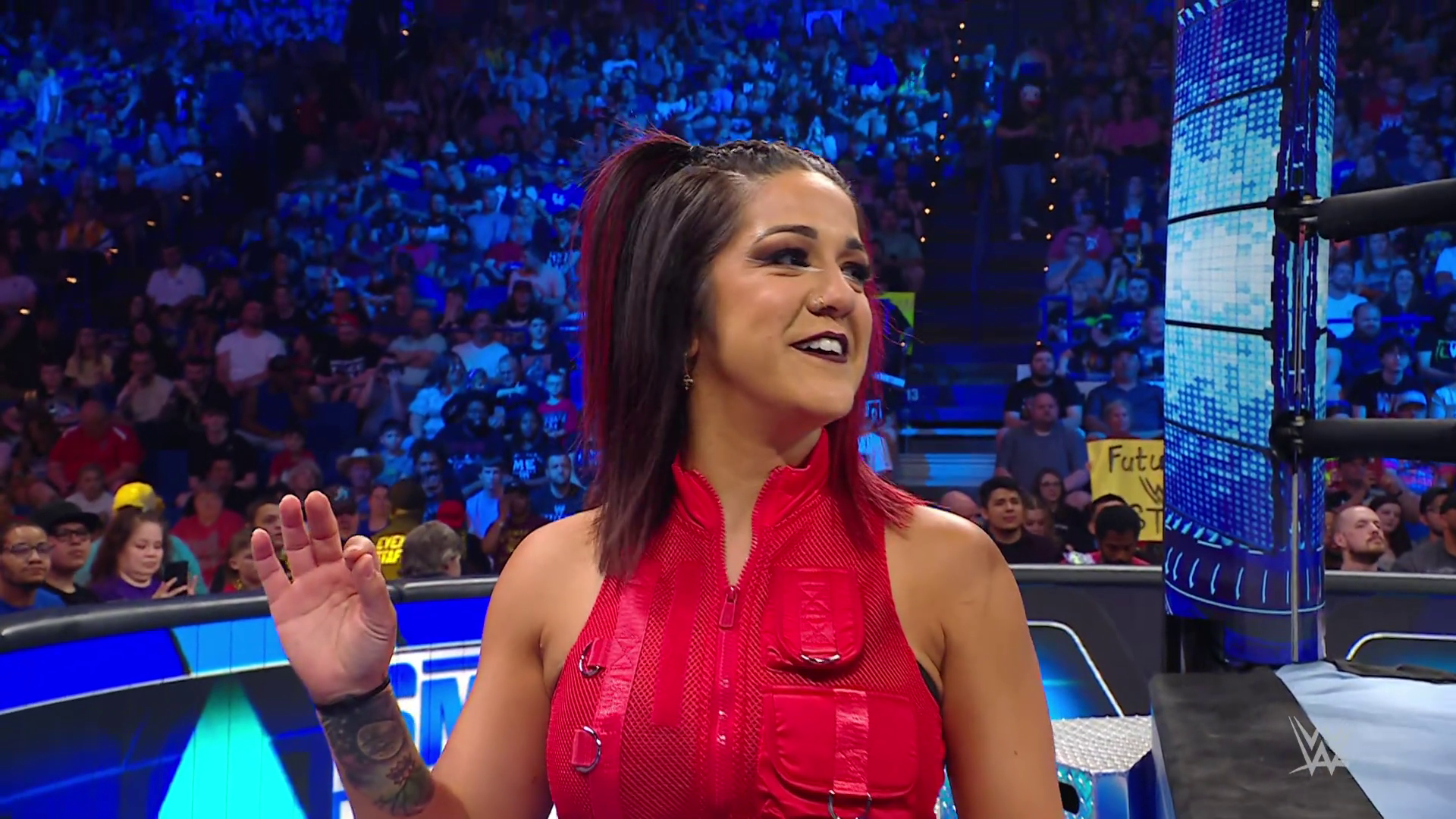 On the June 16th 2023 episode of SmackDown, IYO faced Zelina. Bayley got up on the apron to provide a distraction to assist SKY. IYO came up behind Vega to roll her up for a pin only for Zelina to counter with a waistlock. SKY nearly collided with Bayley. The referee was distracted admonishing Bayley, missing SKY countering Vega's waistlock into a roll-up. Bayley shouted at the referee to return his attention to the match, pointing at the pin. The referee was too late and Vega kicked out. IYO turned her gaze to Bayley, shouting aggressively at her.
