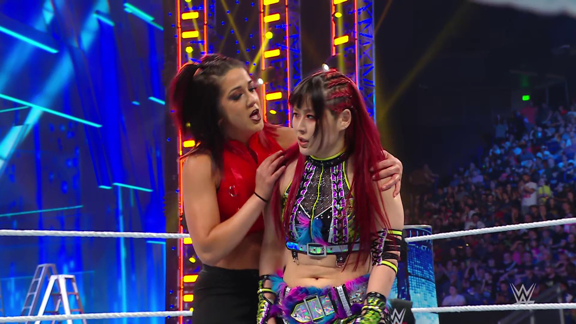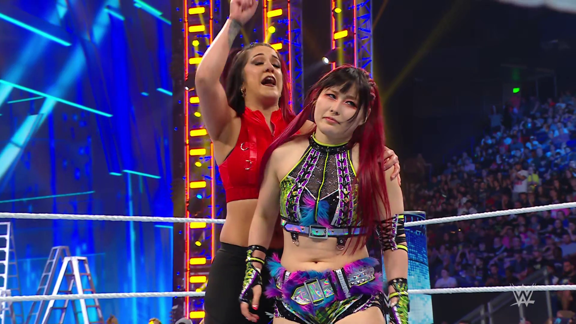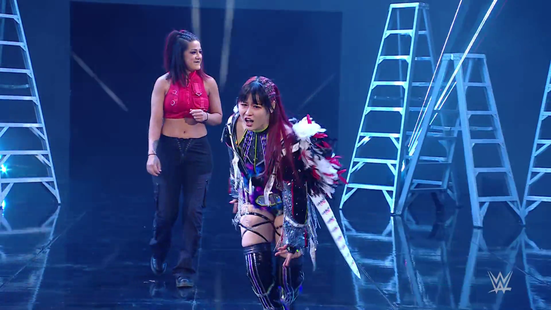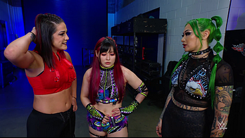 Vega struck SKY down with the 619 and stacked her up for the pinfall victory. Bayley was apologetic to IYO but that didn't calm SKY's anger. Moments later backstage, IYO shouted at Bayley to stop getting involved in her matches. Bayley told IYO she needs to accept all the help she can get right now. IYO questioned if Bayley trusts her. Bayley insisted she does but the ladder match will be every woman for herself so to let her do what she has to do right now. This heated discussion was intruded upon by Shotzi.
