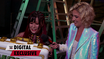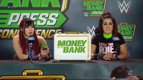 Bayley was encouraged by IYO to come out with her at the Press Conference. SKY was asked about the tension. IYO said firmly WE WON as in the group. Bayley agreed. SKY affirmed they are Damage CTRL and the briefcase is OURS as in belonging to Dakota, Bayley and her. Bayley stressed there was no tension and they were good before pointing out they won just like they said they were going to do. Numerous times I might add. Bayley and IYO gave each other a high-five. SKY and the press had a good-natured laugh noticing Bayley was still in the handcuffs. Bayley took it in stride.