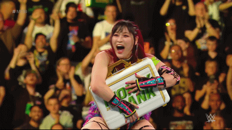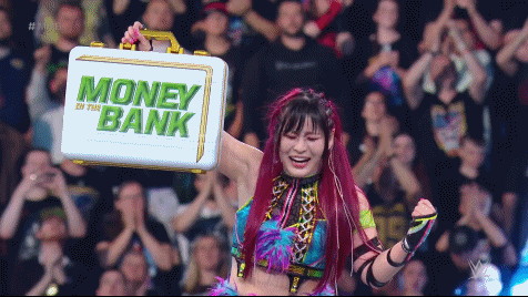 IYO SKY, Dakota Kai and Bayley are The Ladies in the Bank. The briefcase with the contract for a women's championship match anytime, anyplace, anywhere belongs to Damage CTRL. July 1st 2023. The O2 in London, England. Money in the Bank. The Women's Money in the Bank Ladder Match. SKY and Bayley wearing their Damage CTRL arm bands worked as a unit, facing adversaries of the recent past at every turn. Becky Lynch. Trish Stratus. Zelina Vega. And last but not least SKY's former tag team partner Zoey Stark whom IYO still doesn't like.