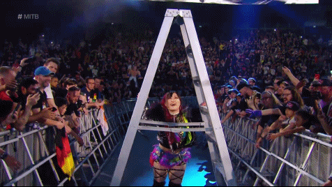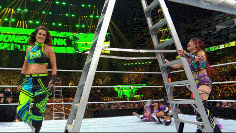 Bayley and IYO were finally alone in the ring. A ladder. The contract looming above. Conversing who should grab it. They both hurried up the rungs. Go figure it would be Bitter Time Becks who stopped them. That idiot Michael Cole stirring shit on commentary. The ladder match continued. Damage CTRL versus The World. Brutality. SKY found herself at the top of the ladder, her hand about to grab the briefcase. The ladder and SKY were toppled over by Bayley! Instinctively. It is every woman for herself. Even so, the right thing for Bayley to do would have been to stand aside, giving IYO a victorious moment. Perhaps what Bayley did wasn't out of instinct rather out of selfishness.
