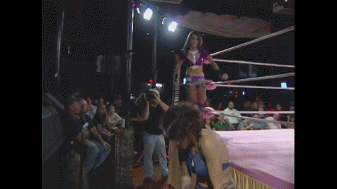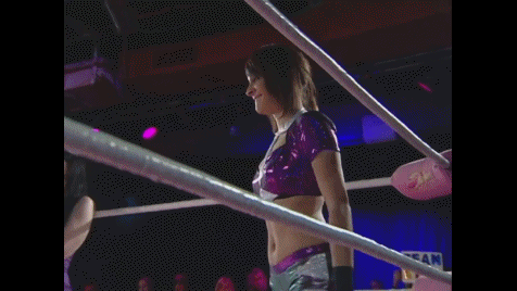Ring announcer, the late great Daphne, introduced Evie at 5'5 inches tall but quickly corrected herself -- 165 centimeters because she's from Auckland, New Zealand. Evie placed her hand above her head and stood tall and proud, revealing she's actually a skyscraper who towers wrestling giants past and present. Don't let that invisible petite mirage cloak she wears fool you.