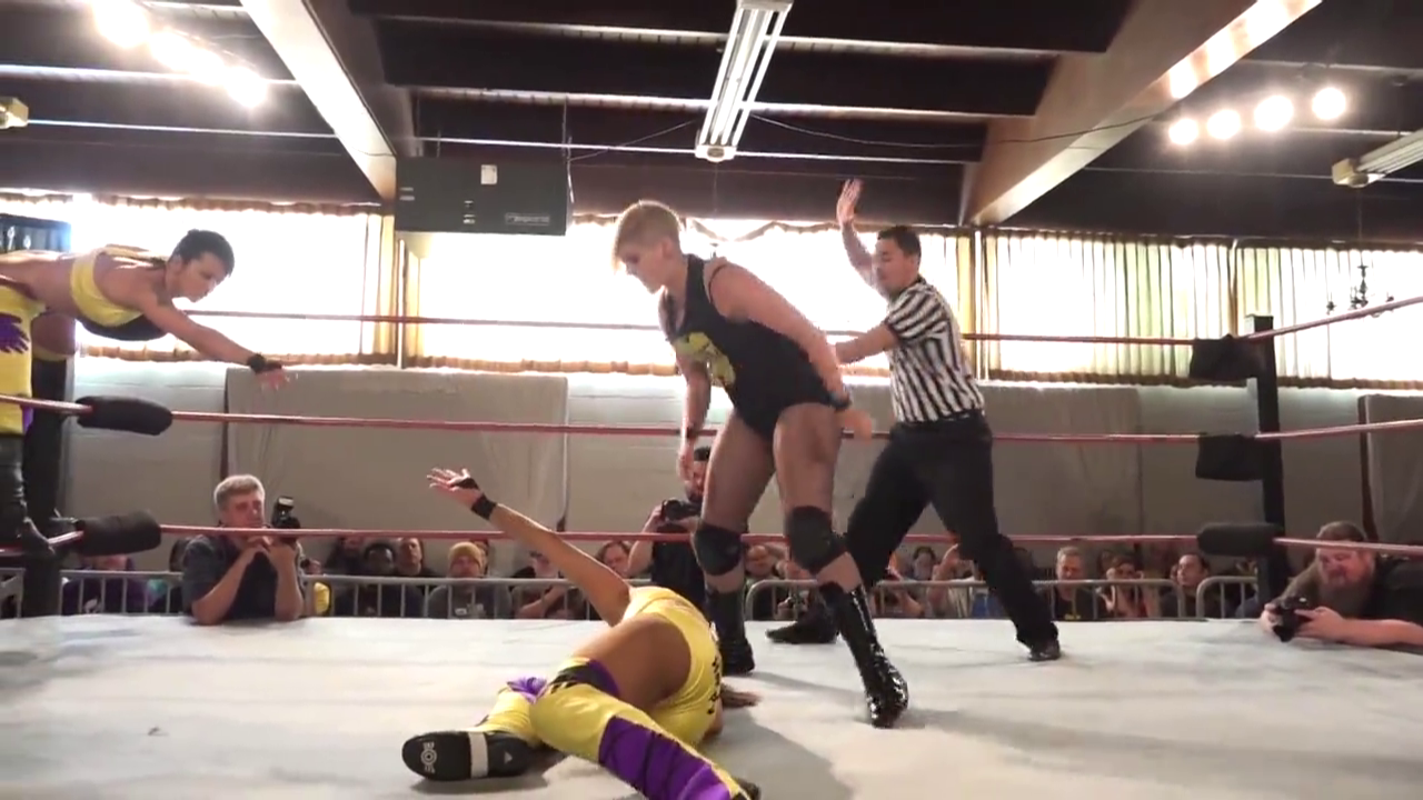 Team Slap Happy vs. Rhia O'Reilly & Saraya Knight at SHIMMER Volume 76