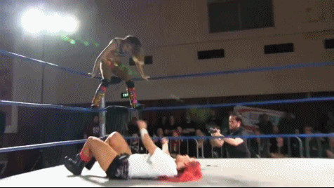 Evie got to her feet and charged at Kellyanne who viciously tossed her into the corner. The impact of the toss hung Evie upside down and helpless in the turnbuckles. Kellyanne came at Evie full steam intent on hitting her with one final cannonball. Evie mustered up every little bit of fight she had left in her heart to pull herself to the top rope and evade. Kellyanne crashed into the bottom turnbuckle but didn't stay down for more than a moment.