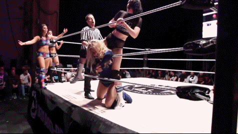 Alex grabbed Nixon intending a tornado DDT. Pollyanna put stop to it, grabbing Alex and launching her so Nixon could drop her with a flatliner. Dahlia grabbed Pollyanna and held her for TK to heinously strike. Pollyanna moved out of the way. TK instead struck his lover Dahlia. Nixon had enough of this nonsense. She kicked TK in the bollocks and flipped him off. With TK out of the way Nixon returned her focus to Dahlia, release tiger suplexing her to the canvas.